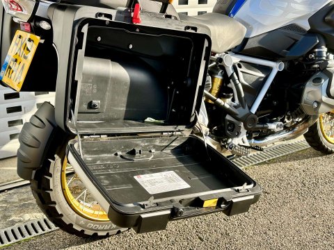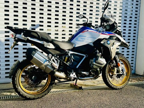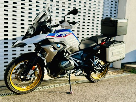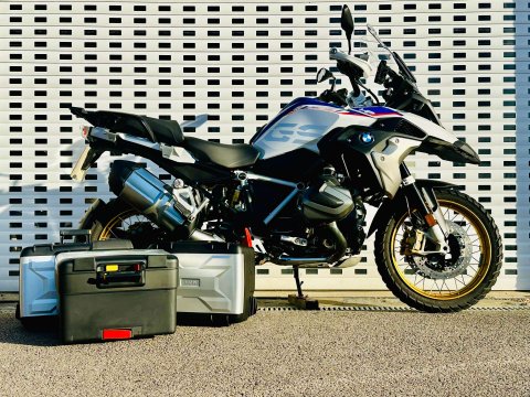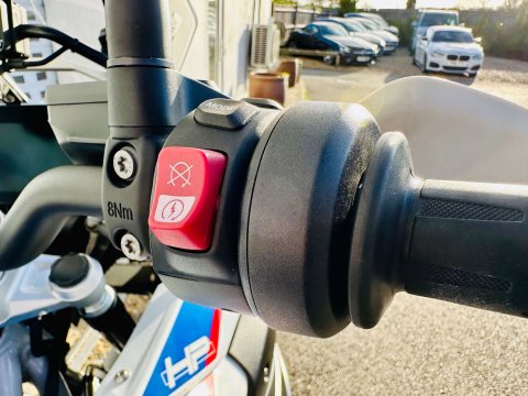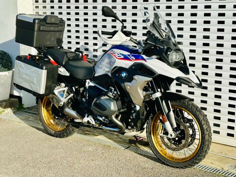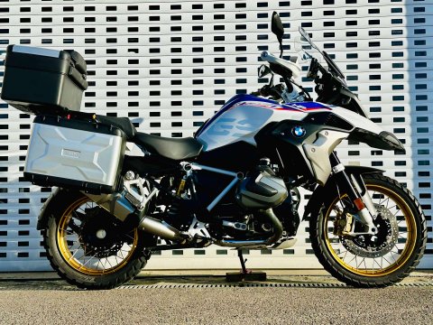 STUNNING ONE OWNER BMW R1250 GS RALLYE TE IN SPLENDID HP MOTORSPORT COLOUR SCHEME WITH GOLD RIMMED WIRE SPOKED WHEELS & FULL BMW VARIO HARDBOX LUGGAGE. This is the full TE spec featuring Dynamic ESA (Dynamic Suspension Adjustment), Gearshift Assistant Pro, LED Headlights with adaptive cornering lighting, Driving Modes Pro, Keyless Ride, Hand protectors, Touring Package; comprising Lockable Satellite Navigation Preparation/cradle (Requires Module) Cruise Control. Comfort Package comprising; Keyless ride, Comfortable Heated grips & Chrome plated exhaust. There are two seat rider seat positions, adjustable front screen height, Braided brake hoses, centre stand and 12v Socket.