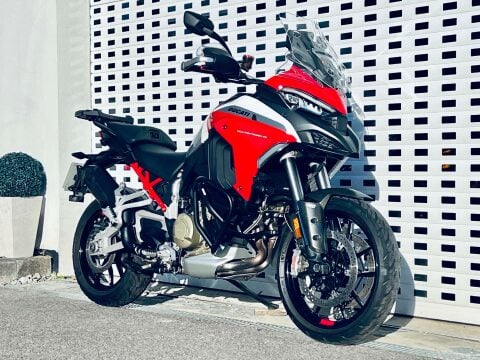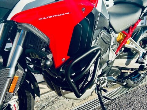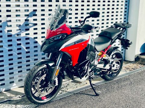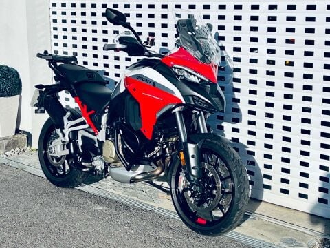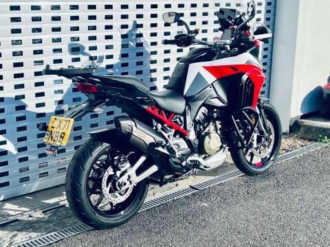 A LOVELY MULTISTRADA V4S LIVREA SPORT WITH HIGH SPEC OF TOURING PACK, AKRAPOVIC EXHAUST, HEATED GRIPS, HEATED SEATS, RADAR ADAPTIVE CRUISE AND BLINDSPOT MONITORING, MAINSTAND, AUXILIARY LIGHTS AND CRASH BARS. CARPURIDE CAMERA SYSTEM INSTALLED (AFTERMARKET). The Multistrada V4S combines huge performance with high levels of comfort. Wide service intervals of nearly 10,000 miles and valve services due just short of 40,000 miles means that it is suprisingly inexpensive to maintain. The bike has Skyhook electronic suspension, cruise control, rider modes, large colour tft dash, Quickshifter (Up/Down), Brembo Stylema calipers and easily adjustable windscreen. The Livrea Sport spec and colour is one of the most attractive colourschemes for the V4 Multistrada. Last serviced in April at 16609 miles. Big spec bike with all round sports touring ability.++ WE WILL CONSIDER ANY PART EXCHANGE UP OR DOWN CAR OR BIKE AND CAN OFFER COMPETITIVE LOW DEPOSIT FINANCE WITH PCP OPTIONS. ++UK DELIVERY OPTIONS AT REASONABLE RATES ++