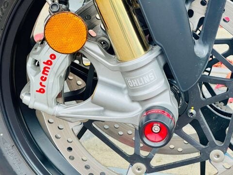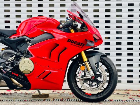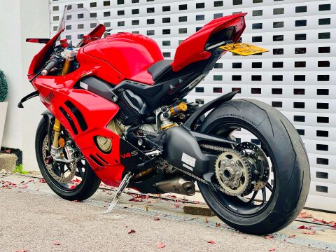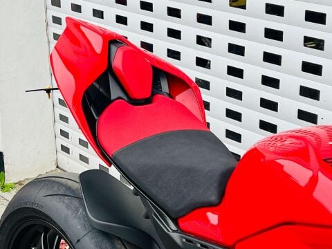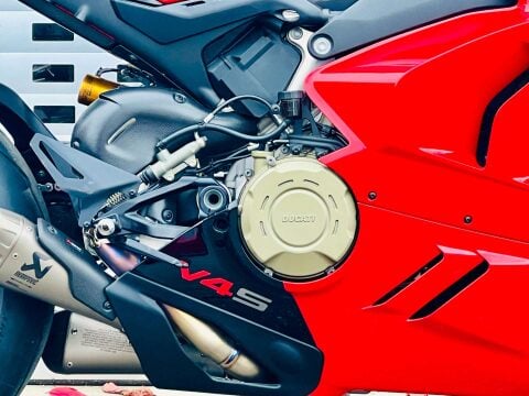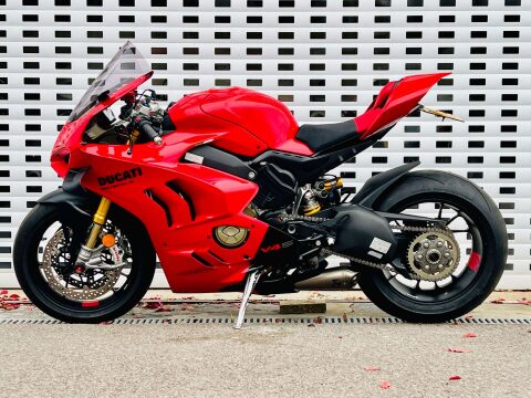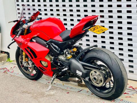 A BEAUTIFUL DUCATI PANIGALE V4S GEN 2, WITH TITANIUM AKRAPOVIC AND UP-MAP, RIZOMA BLADE MIRRORS, TAIL TIDY WITH INTEGRATED INDICATORS, RIZOMA MINI BULLIT INDICATORS ON THE FRONT, RIZOMA RESERVOIR POTS AND FRONT AXLE SLIDER, SMOKED RACE SCREEN, EVOTECH RADIATOR GUARDS AND HEATED GRIPS. This is a 1 owner bike with two service stamps, the last one being in June 2025 at 487 miles. Full paint protection kit fitted on panels and tank to prtect against scuffs and chips. FULL V4 S FACTORY SPEC INC; TFT DASH, LED HEADLIGHTS & DAYLIGHT RUNNING LIGHTS, ELECTRONIC OHLINS FRONT FORKS, & Öhlins TTX 36 electronic rear shock absorber, Öhlins steering damper. Choose from Three riding preset rider Modes (Race, Sport, Street) or customise two separate Race 1 and Race 2 modes from the myriad of settings available from the latest suite of dial up or down electronics; ABS Cornering Bosch EVO, Ducati Traction Control EVO (DTC EVO), Ducati Slide Control (DSC), Ducati Wheelie Control EVO (DWC EVO), Ducati Power Launch (DPL), Ducati Quick Shift up/down EVO (DQS EVO), Engine Brake Control EVO (EBC EVO), Marchesini Forged Wheels and the amazing Brembo Stylema calipers. An amazing example with all the expensive accessories already done for its new owner. ++ WE WILL CONSIDER ANY PART EXCHANGE UP OR DOWN CAR OR BIKE AND CAN OFFER COMPETITIVE LOW DEPOSIT FINANCE WITH PCP OPTIONS. ++UK DELIVERY OPTIONS AT REASONABLE RATES ++