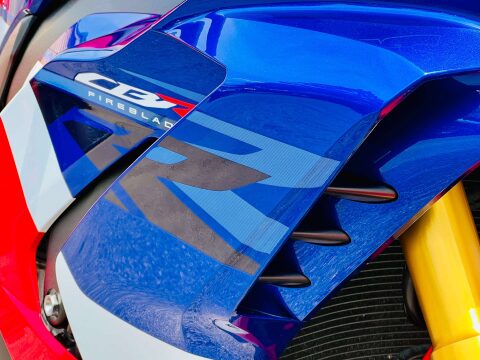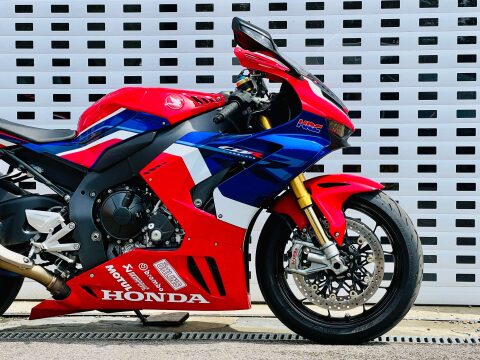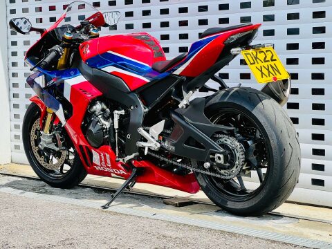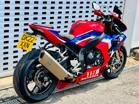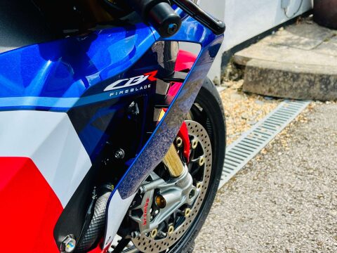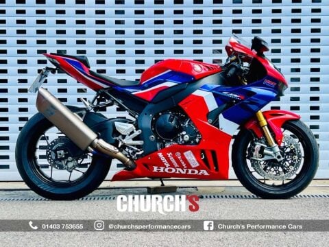 A LOVELY HONDA FIREBLADE CBR1000RR-R SP IN THE VIBRANT RED/WHITE/BLUE COLOURS. THIS EXAMPLE IS STANDARD APART FROM A TAIL TIDY. 2 SERVICE STAMPS IN THE BOOK AND ONE DUE TO BE DONE PRIOR TO SALE. Blending cutting-edge technology with incredible performance. Powered by a 999cc inline four-cylinder engine delivering a staggering 214 HP at 14,500 RPM, it features; AKRAPOVIC Titanium Exhaust Silencer, throttle-by-wire system, dual-stage fuel injection, and a high 13.4:1 compression ratio for unmatched precision and power delivery. Its aluminum twin-spar frame ensures high-speed stability, while Öhlins NPX Smart EC 2.0 front forks and a TTX36 Smart EC rear shock provide electronically adjustable damping for supreme handling. Brembo Stylema front calipers with dual 330mm discs and a rear Brembo caliper on a 220mm disc, supported by ABS with track and street modes. The 6-axis IMU enables Honda Selectable Torque Control, cornering ABS, wheelie control, and engine braking control, Quickshifter with auto-blipper and multiple riding modes. Aerodynamic winglets integrated, 17” aluminum, full-color TFT display, LED lighting, keyless ignition. Will come serviced (now done), new rear tyre and MOT'd prior to collection. This bike has lowering links available but the originals are now fitted unless it appeals to new owner with shorter leg length. ++ WE WILL CONSIDER ANY PART EXCHANGE UP OR DOWN CAR OR BIKE AND CAN OFFER COMPETITIVE LOW DEPOSIT FINANCE WITH PCP OPTIONS. ++UK DELIVERY OPTIONS AT REASONABLE RATES ++