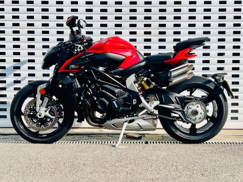 STUNNING EXAMPLE OF THE MV AGUSTA BRUTALE RS IN THE RED LIVERY. THIS EXAMPLE HAS ONLY COVERED 852 MILES AND IT SHOWS! The Brutale 1000 RS is the more comfortable of the two Brutale models with bars that sit slightly higher than the RR. It features the single sided swingarm, quad exhausts at high level and such beautiful styling and engineering throughout. It is one of those bikes that can be appreciated just stood still. Power is over 200 bhp and packs a huge amount of electronics with Quickshifter (Up/Down), Rider modes, traction control, ABS, colour dash and cruise control. The suspension is the chunky Marzocchi 50mm front fork, with front and rear suspension both being fully adjustable. An amazing product from MV with a large saving over its new price. 2 Service stamps in the book, last one at 468 miles. ++ WE WILL CONSIDER ANY PART EXCHANGE UP OR DOWN CAR OR BIKE AND CAN OFFER COMPETITIVE LOW DEPOSIT FINANCE WITH PCP OPTIONS. ++UK DELIVERY OPTIONS AT REASONABLE RATES ++