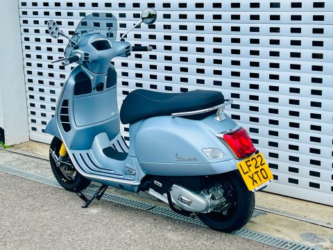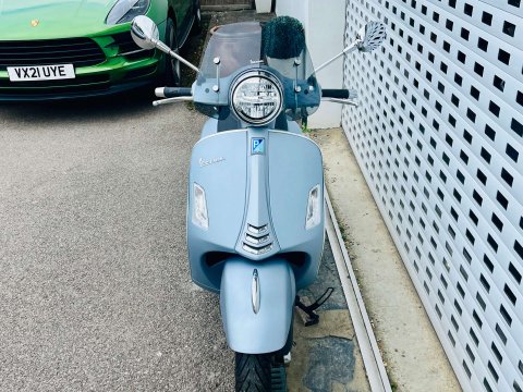 ++ JUST REDUCED ++ LOVELY EXAMPLE OF THE VESPA GTS125 FINISHED IN THE PALE MATT BLUE WHICH IS STRIKING IN THE FLESH. THIS WELL LOOKED AFTER EXAMPLE IS LEARNER LEGAL AFTER DOING A CBT. The GTS125 Supertech is extremely economical with owners reporting well over 100 mpg so is a low cost commuter. It is easy to ride and practical with underseat storage too. The Vespa has always been one of the most stylish scooters around and this is also Euro 5 compliant so ideal for those travelling within urban environments. This one is fitted with the Vespa smoke flyscreen which offers a nice styling touch and more protection. Standard factory immobiliser on these models.