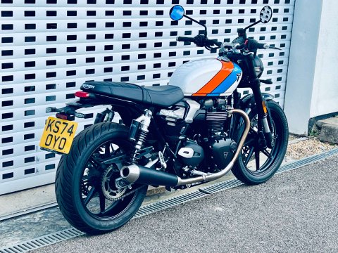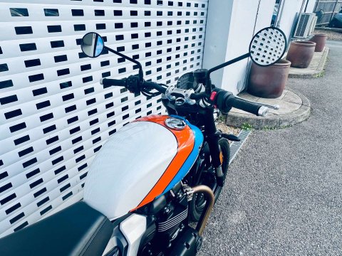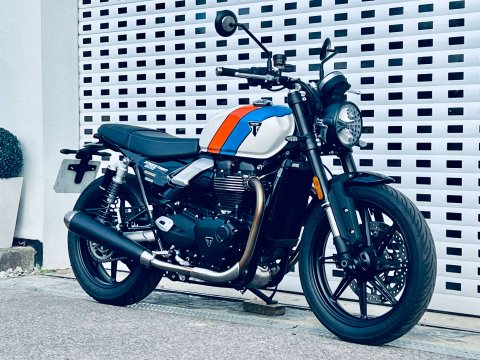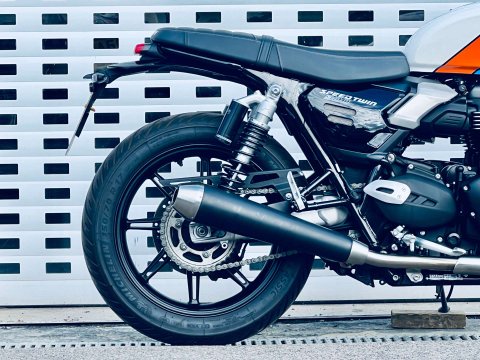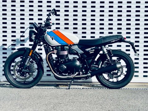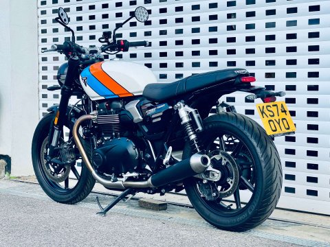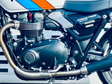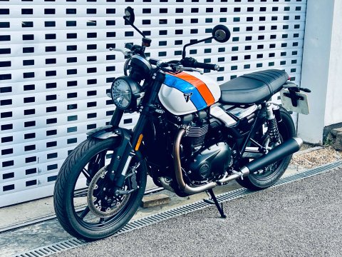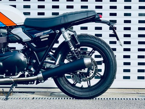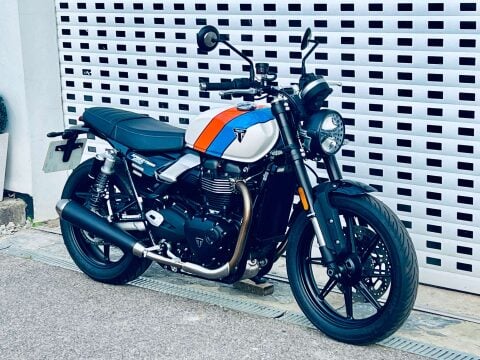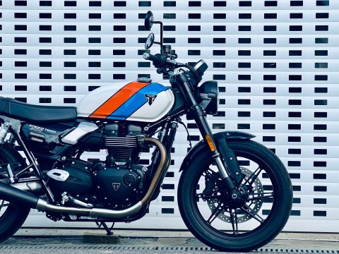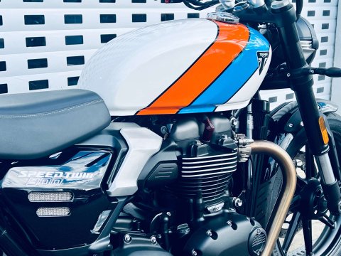 ++ JUST REDUCED ++ A LOVELY SPEED TWIN 900 IN ARGUABLY THE BEST COLOUR WHICH IS A £500 OPTION. THIS BIKE IS FITTED WITH THE GENUINE HEATED GRIPS AND BEING THE NEW MODEL IT COMES WITH REVISED DASH, USB-C CHARGE POINT, COLOUR DASH AND REVISED TRACTION AND ABS SETTINGS. THE 900 NOW ALSO HAS MARZOCCHI FRONT FORKS AND PIGGYBACK REAR TWIN SHOCKS. Very low miles and great condition. Last serviced at the end of May 2025 at 922 miles. The service interval is now a lengthy 10,000 miles. This bike is still covered under Triumphs 24 month warranty and can be extended within 13 months of registration for an extra 12 or 24 months additional cover. The 900 is a very easy bike to ride with a very sensible seat height too. A very handsome model in the range.