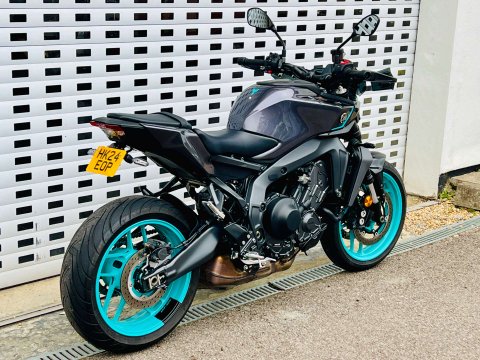 A LOVELY MT-09 GEN 4 IN THE MOST POPULAR COLOUR OF MIDNIGHT CYAN WITH TASTEFUL ACCESSORIES OF TAIL TIDY, RADIATOR GUARD, SMOKED FLYSCREEN AND HANDGUARDS. The MT-09 for 2024 (4th Generation) really is the evolution of what has always been a scorcher of a performer in the naked middleweight sector. This generation had numerous upgrades which includes, new dash, new geometry, revised suspension, new switchgear and cruise control now added as standard. The suspension is fully adjustable so can be fine-tuned to owner specification and the braking is catered for with radial master cylinder and radial calipers. The engine is the focal point on this bike though which has character, smoothness, economy and big torque which makes it one of the most hilarious naked bikes to ride regardless off cc class. Combined with an advanced electronics suite including rider modes, traction control, quickshifter (up/down), colour dash and wheelie control it offers more than expected in the sector. One of the best bikes that any Japanese manufacturer currently produces. ++ WE WILL CONSIDER ANY PART EXCHANGE UP OR DOWN CAR OR BIKE AND CAN OFFER COMPETITIVE LOW DEPOSIT FINANCE WITH PCP OPTIONS. ++UK DELIVERY OPTIONS AT REASONABLE RATES ++