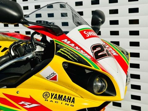 The Big Bang R1 is fast becoming one of the most desirable modern classic litre sports bikes around and in this livery it is a very rare find indeed. Features include Akrapovic carbon tip exhausts, compact aluminium Deltabox chassis, LED illumination lights, LED indicators, three level D-Mode electronics, Inline Cross plane engine. Super clean condition.