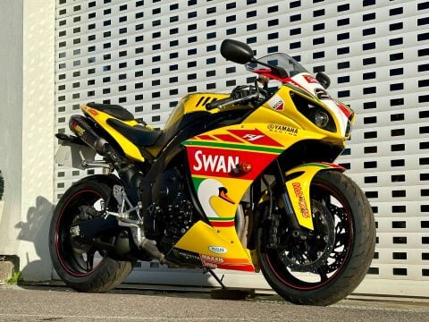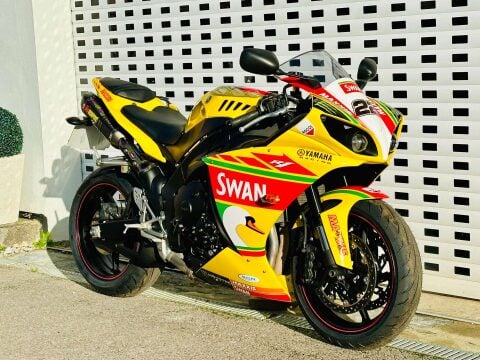 STUNNING YAMAHA R1 BIG BANG IN SWAN RACING LIVERY BY DREAM MACHINE. THIS IS ONE OF A HANDFUL OF R1's WHICH WERE PAINTED IN THIS COLOUR SCHEME FROM NEW TO CELEBRATE TOMMY HILLS 2011 BRITISH SUPERBIKE CHAMPIONSHIP WINNING SEASON. THIS EXAMPLE HAS BEEN STORED UNUSED FOR A NUMBER OF YEARS HENCE THE LOW MILEAG AND HAS UNDERGONE A FULL RECOMMISSIONING SERVICE READY FOR SALE.